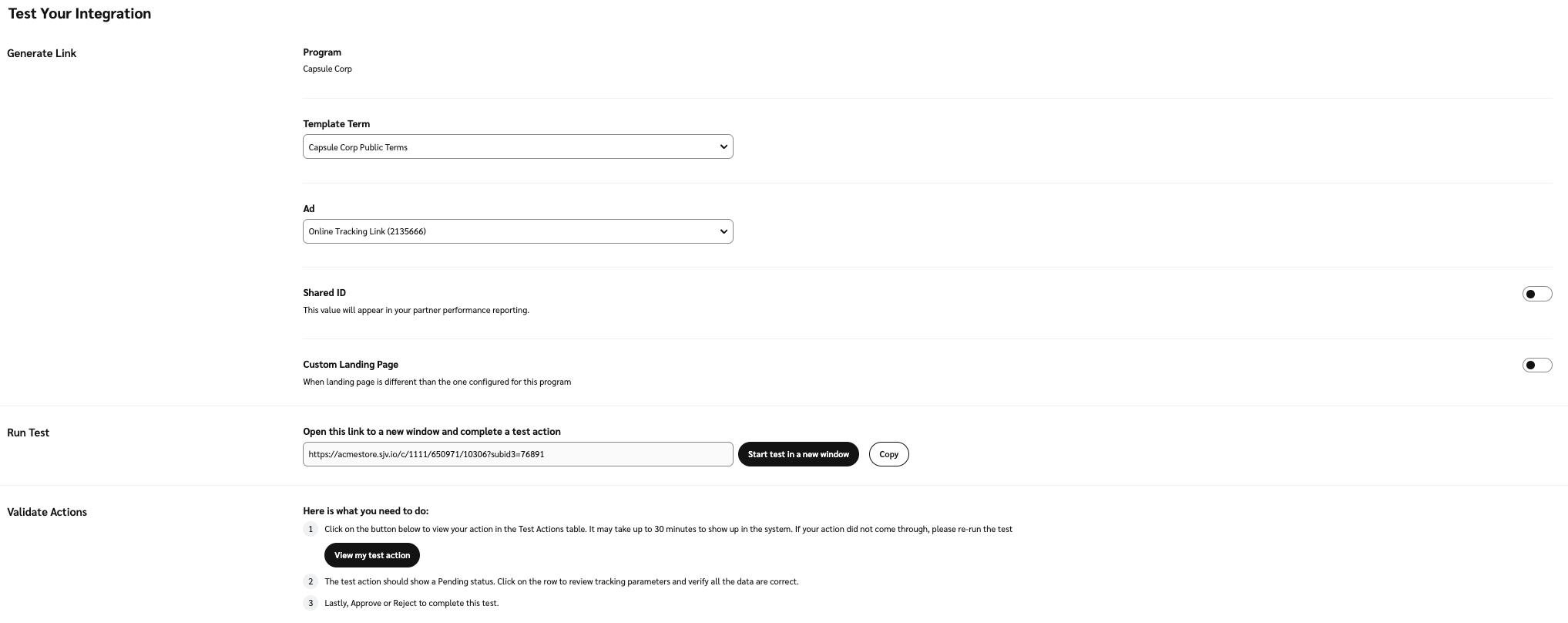 We recommend first testing in your staging or QA environments, then once you are ready, impact.com requires that you perform at least one end-to-end test of each new event type in your production environment. This production end-to-end test should be viewed as a final validation ahead of the launch of a new event type.