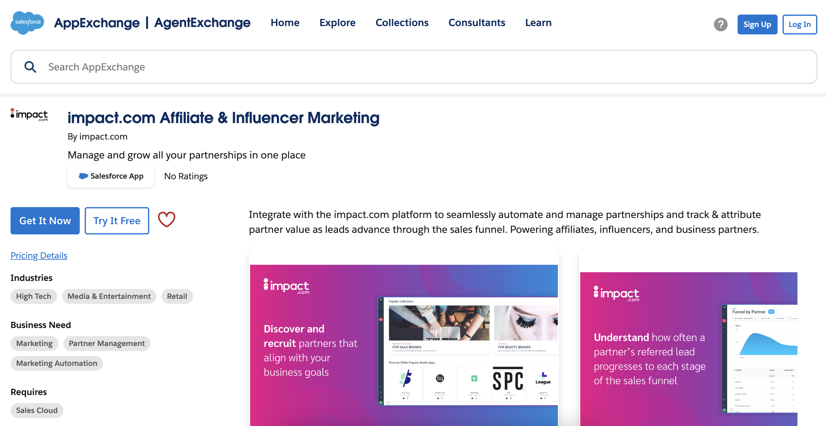 - Visit the impact.com Partner Manager Salesforce AppExchange page.