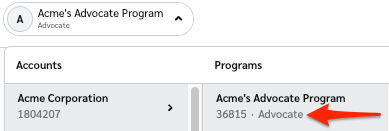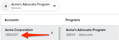 | Program Id* | To find your Program Id, in the impact.com platform, select your account name in the upper-left corner and copy the number string below your program name in the right column. |