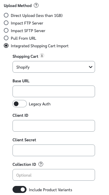 Integrated Shopping Cart Import, then in the dropdown, select Shopify. Enter your Shopify store details: